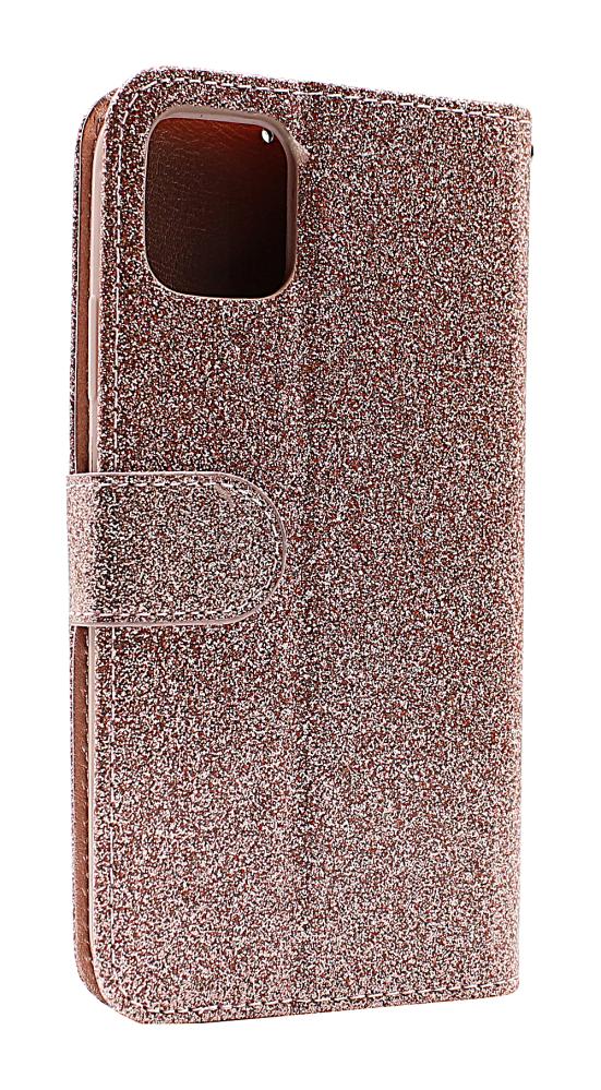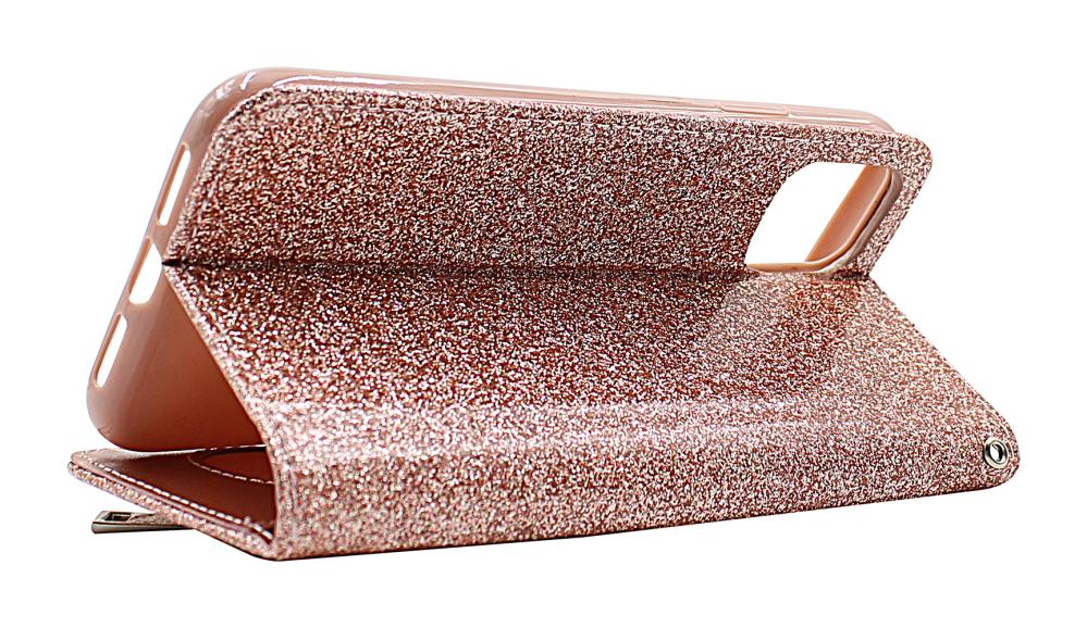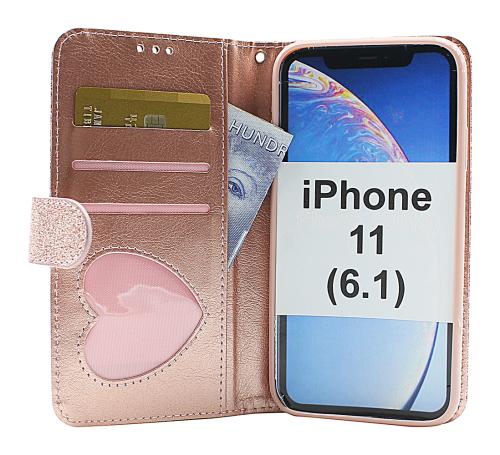 Standcase Glitterwallet iPhone 11 (6.1), jossa on 3 korttitaskua, joista yksi on läpinäkyvä ja sydämen muotoinen.